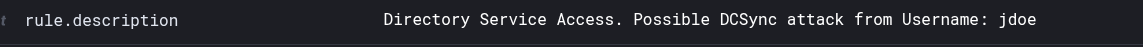 <description>Directory Service Access. Possible DCSync attack from Username: $(win.eventdata.SubjectUserName)</description>