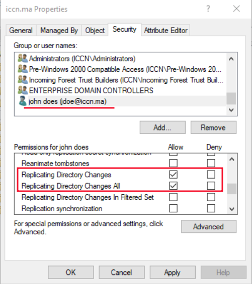 the jdoe user must have DS-Replication-Get-Changes and DS-Replication-Get-Changes-All in order for this attack to work