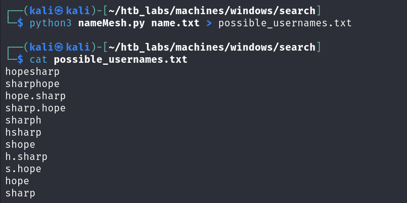 sudo /opt/kerbrute/dist/kerbrute_linux_amd64 userenum --dc 10.10.11.129 -d search.htb ./possible_usernames.txto
